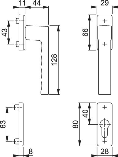 | Rozměry rozety (klika): | 29 x 66 x 8 mm |