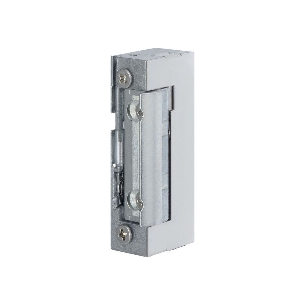 Otvírač pracuje v režimu pod napětím průchozí / bez napětí blokovaný, což znamená, že při aktivaci napětí umožňuje otevření dveří, zatímco při jeho odpojení zůstává bezpečně uzamčen. Integrovaná mechanická blokace umožňuje trvalé odblokování bez nutnosti elektrického impulzu.