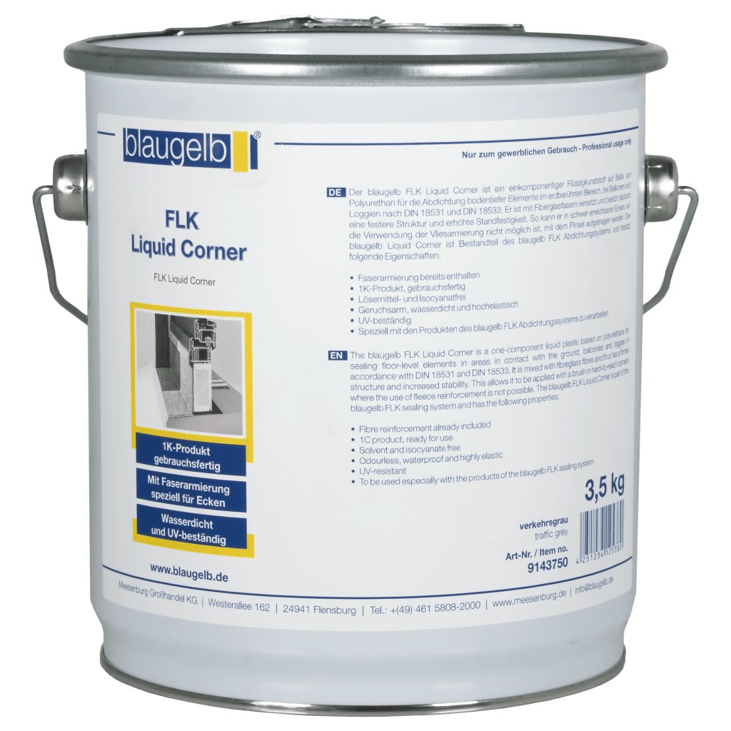 Liquid Corner blaugelb FLK je součástí těsnícího systému blaugelb FLK a je určen pouze pro selektivní použití, nikoli pro velkoplošné těsnění podle ETA.