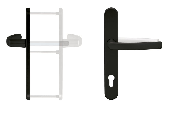 Vnitřní štít kování blaugelb s klikami ½ DGT30 vnitřní PZ92 lze díky kuličkové klipové technice snadno sejmout a namontovat. Kování se upevňuje skrytým přišroubováním. Kování blaugelb s klikami ½ DGT30 vnitřní PZ92 lze kombinovat s madlem nebo s kováním blaugelb ½ DGT30 vnější PZ92.