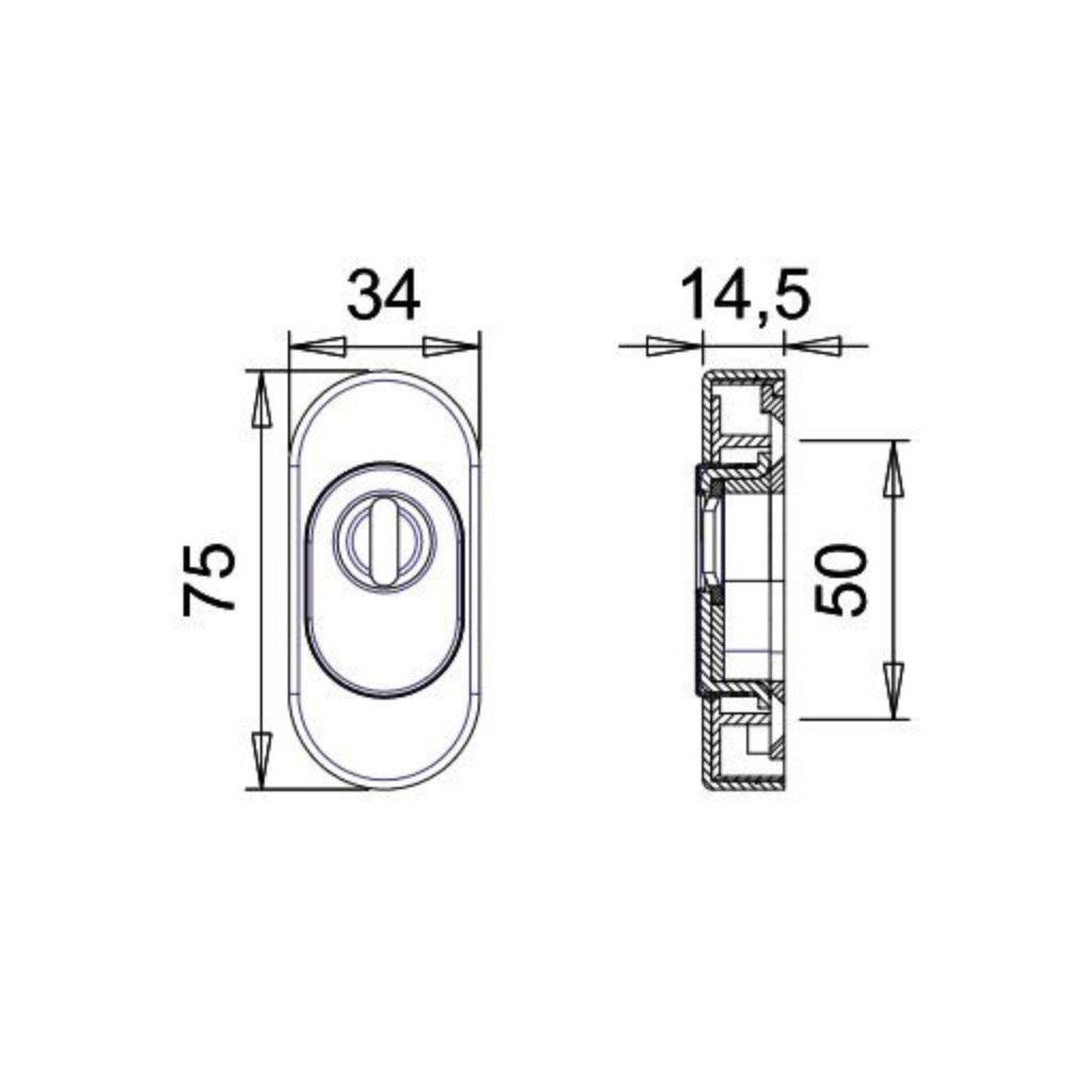 Kvalitní klíčová rozeta PZ v oválném provedení od německého výrobce DIECKMANN je určena pro rámové dveře v interiéru i exteriéru. Díky eloxovanému hliníku a preciznímu zpracování nabízí dlouhou životnost, odolnost a moderní design. Rozeta je kompatibilní se standardní cylindrickou vložkou (FAB) a splňuje DIN normy.
