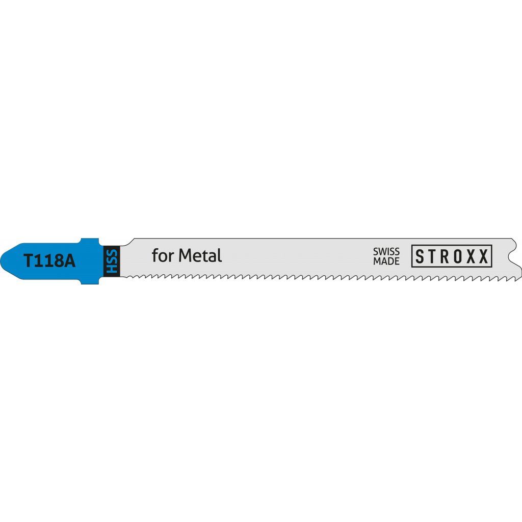 Set pilových plátků STROXX pro přímočaré pily HSS T 118 A. Rozměr plátku 92 x 1,1-1,5 mm. Balení 5 ks.